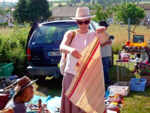 We use different fabrics in our items and for a normal vintage fabric such as metis we have a standard price. If we come across unused vintage linen or hemp which is very unusual then we have to pay more for it and hence it has to cost more. You will have a very special bag or apron which will be unique.