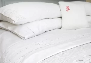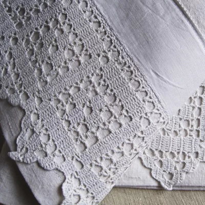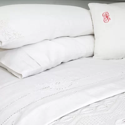 Pillowcases: Our pillowcases are a generous size housewife style, to fit a standard rectangular pillow. Three designs are available; plain, edged with ladderwork or with vintage lace trim.