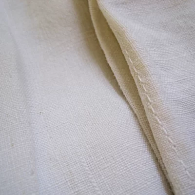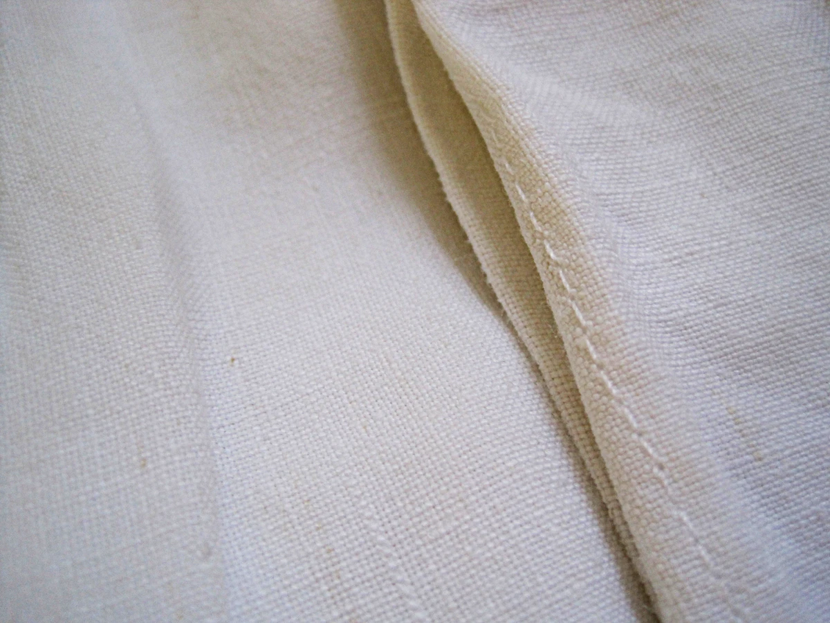 Napkins, table mats and runners: available in a variety of weights of pure linen or hemp in natural shades or dyed. Also made from lengths of tea towel fabrics with stripes or damask patterns.